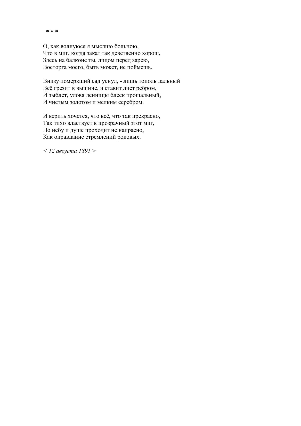 О, как волнуюся я мыслию больною