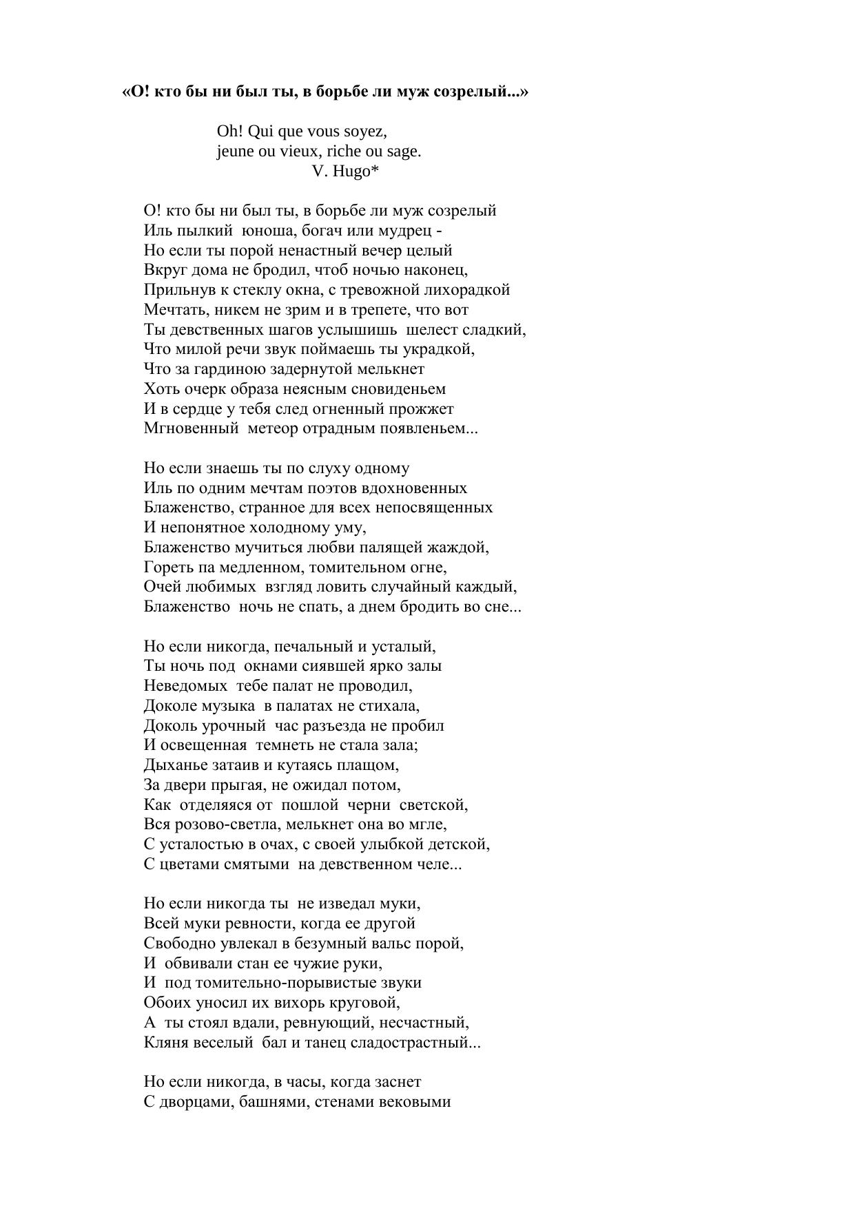 О! кто бы ни был ты, в борьбе ли муж созрелый