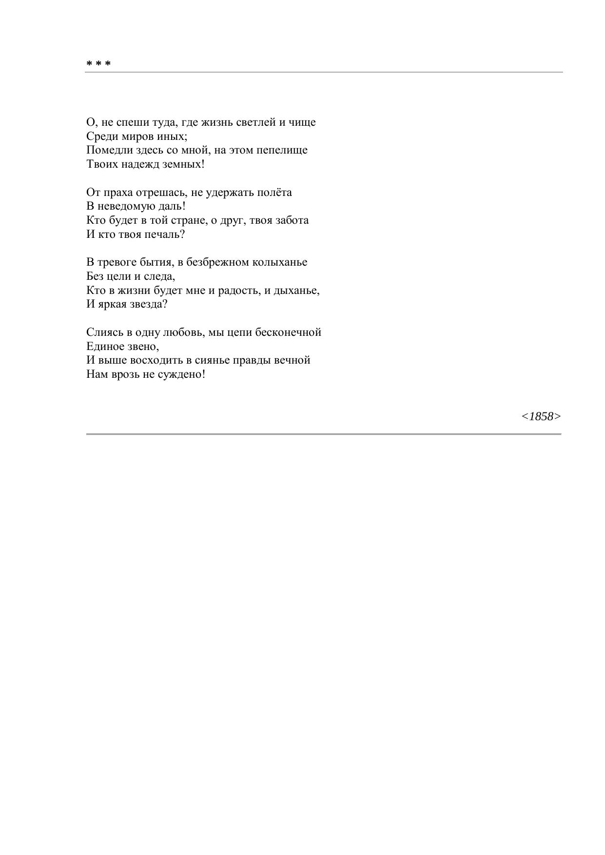 О, не спеши туда, где жизнь светлей и чище…