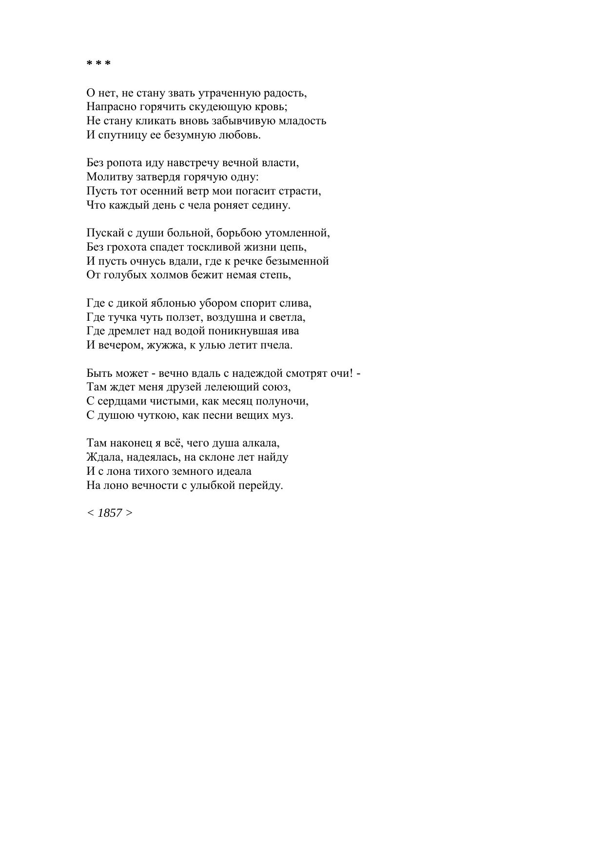 О нет, не стану звать утраченную радость