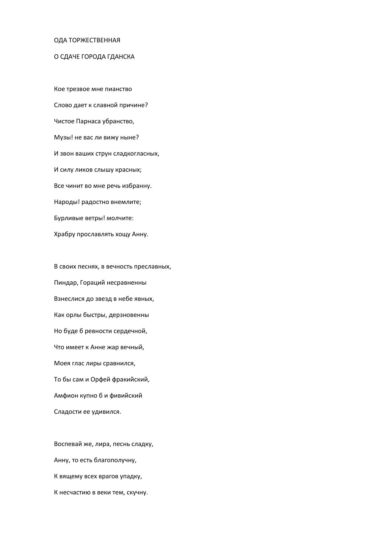 ОДА ТОРЖЕСТВЕННАЯ О СДАЧЕ ГОРОДА ГДАНСКА