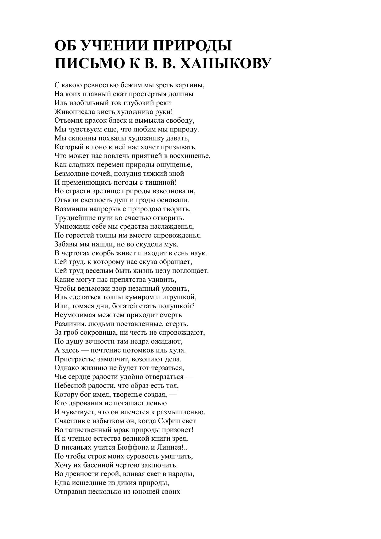 Об учении природы. Письмо к В.В. Ханыкову