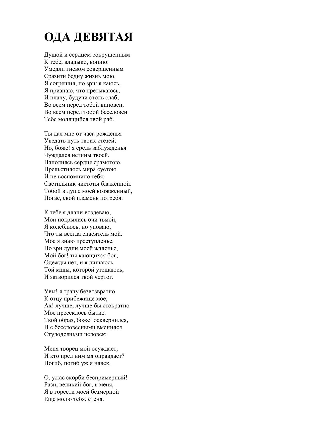 Ода девятая («Душой и сердцем сокрушенным...»)