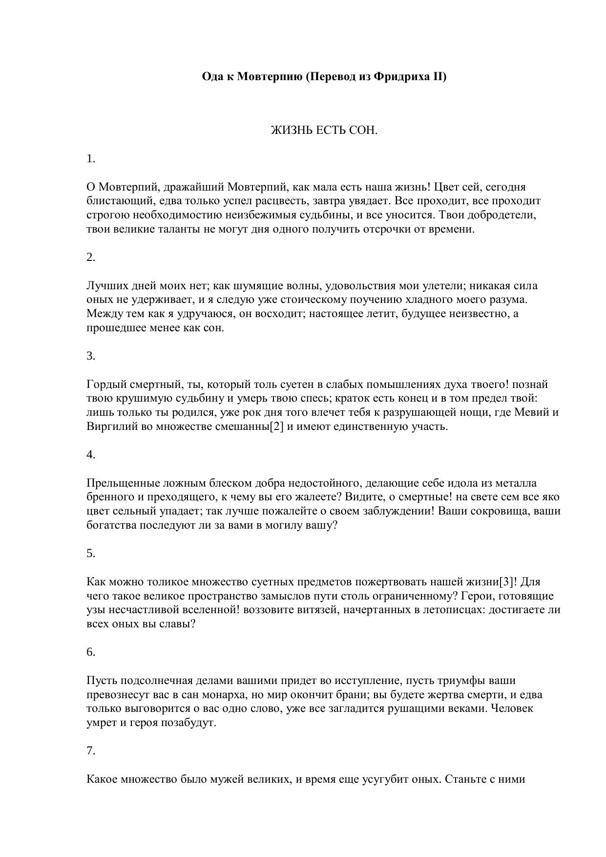 Ода к Мовтерпию (Перевод из Фридриха II)