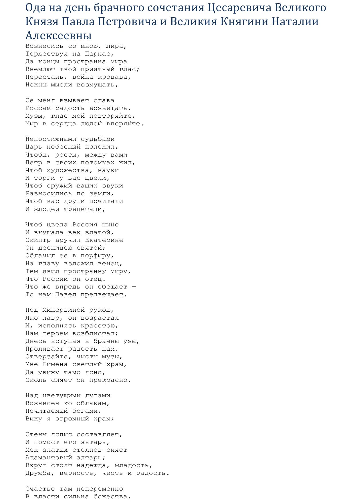 Ода на день брачного сочетания Цесаревича Великого Князя Павла Петровича и Великия Княгини Наталии Алексеевны