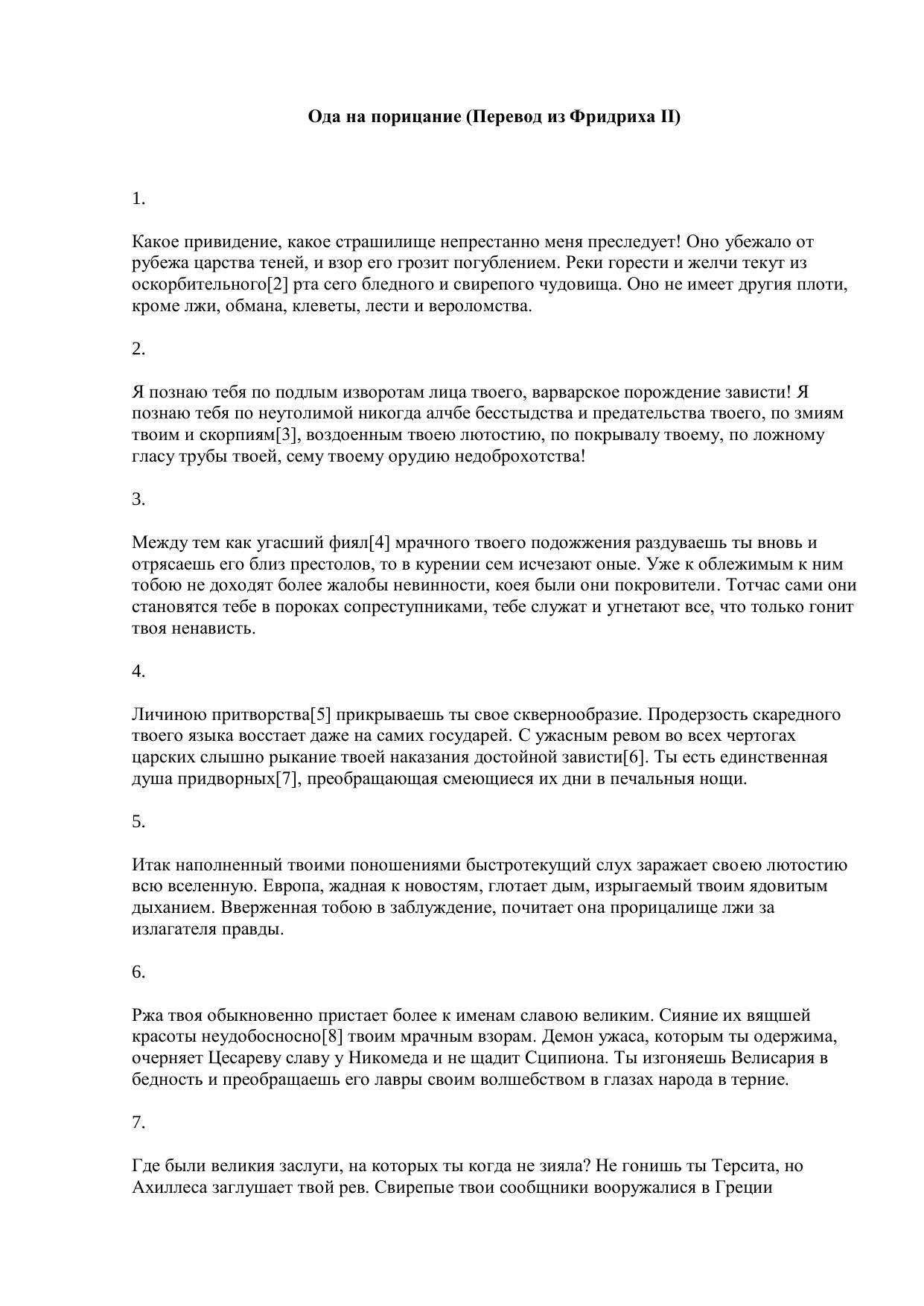 Ода на порицание (Перевод из Фридриха II)