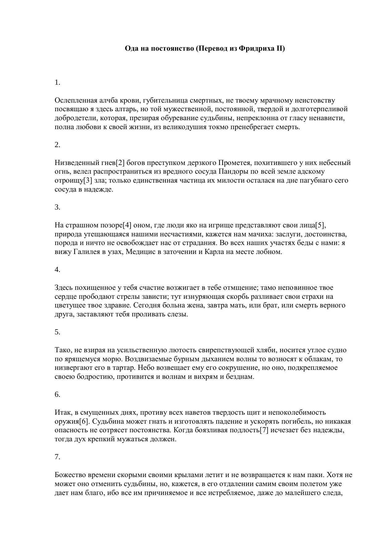 Ода на постоянство (Перевод из Фридриха II)