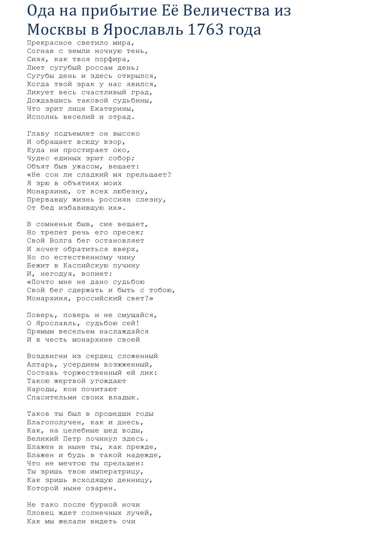 Ода на прибытие Её Величества из Москвы в Ярославль 1763 года