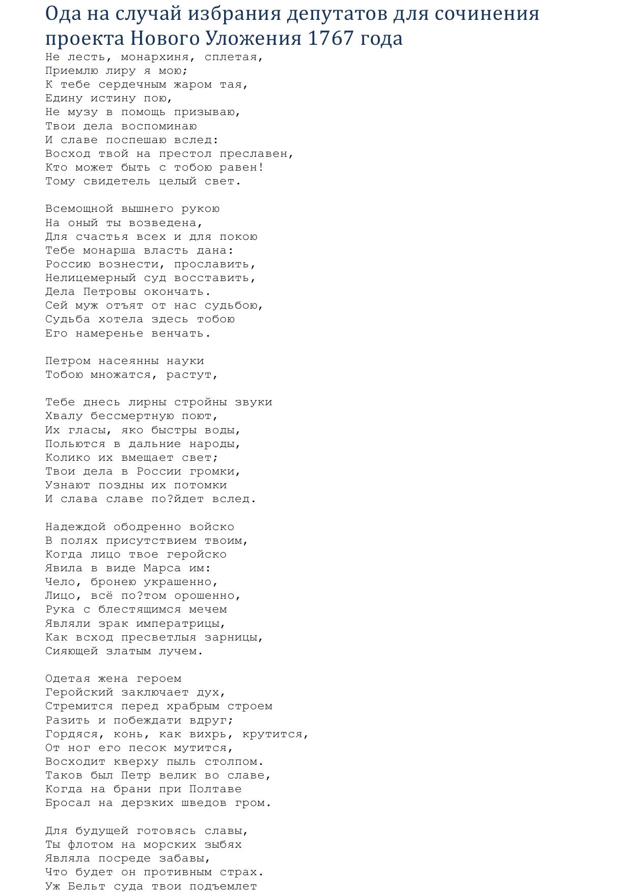 Ода на случай избрания депутатов для сочинения проекта Нового Уложения 1767 года