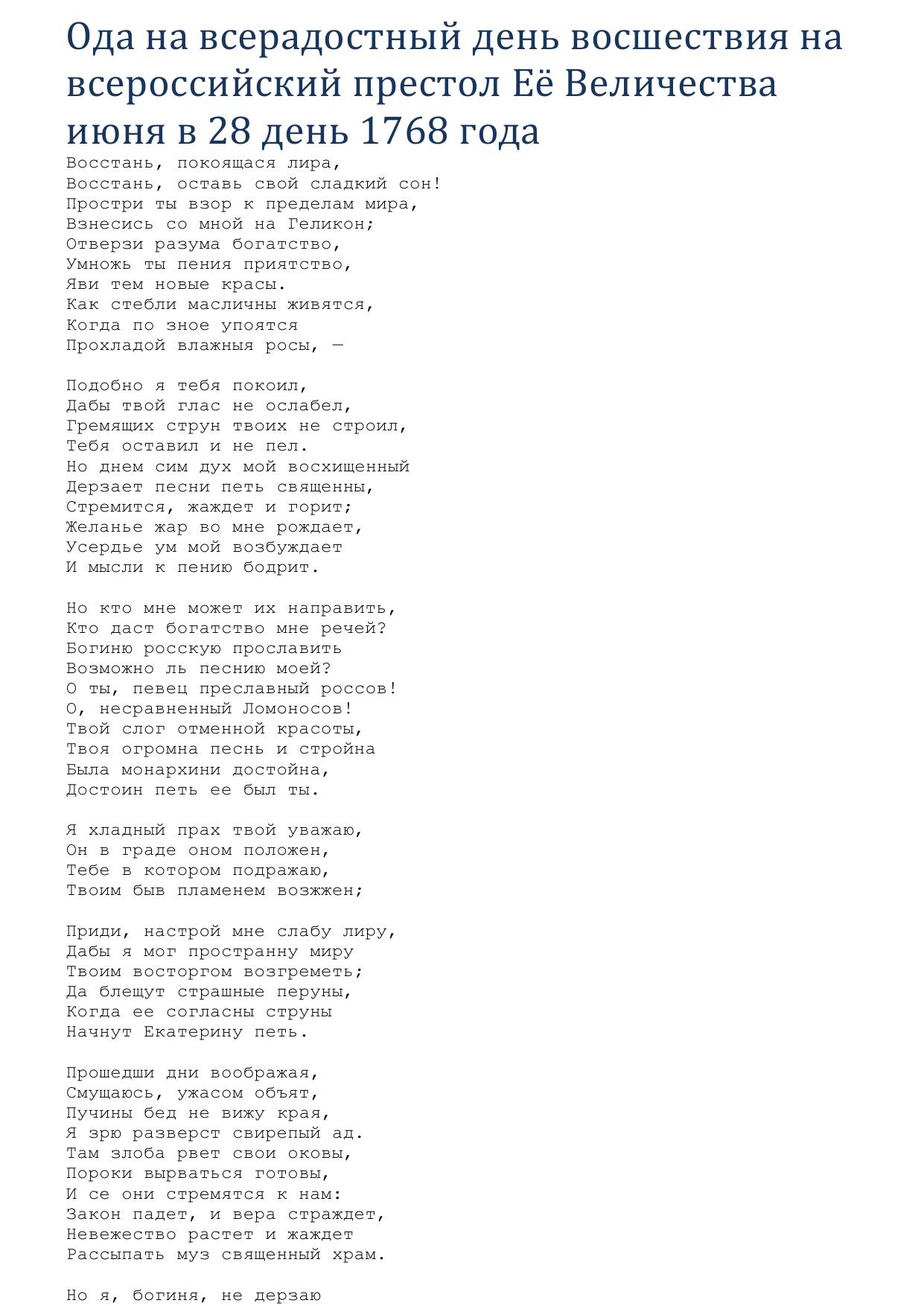 Ода на всерадостный день восшествия на всероссийский престол Её Величества июня в 28 день 1768 года