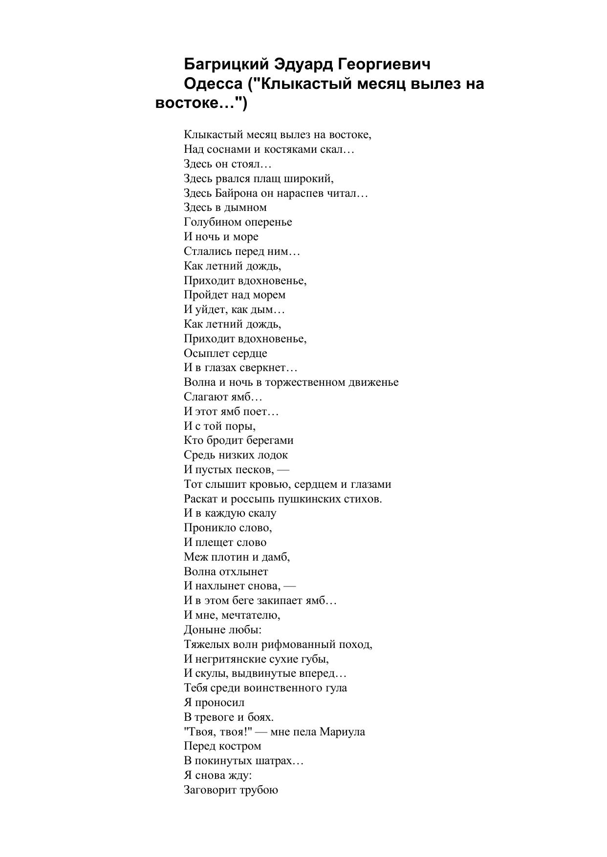 Одесса (Клыкастый месяц вылез на востоке…)