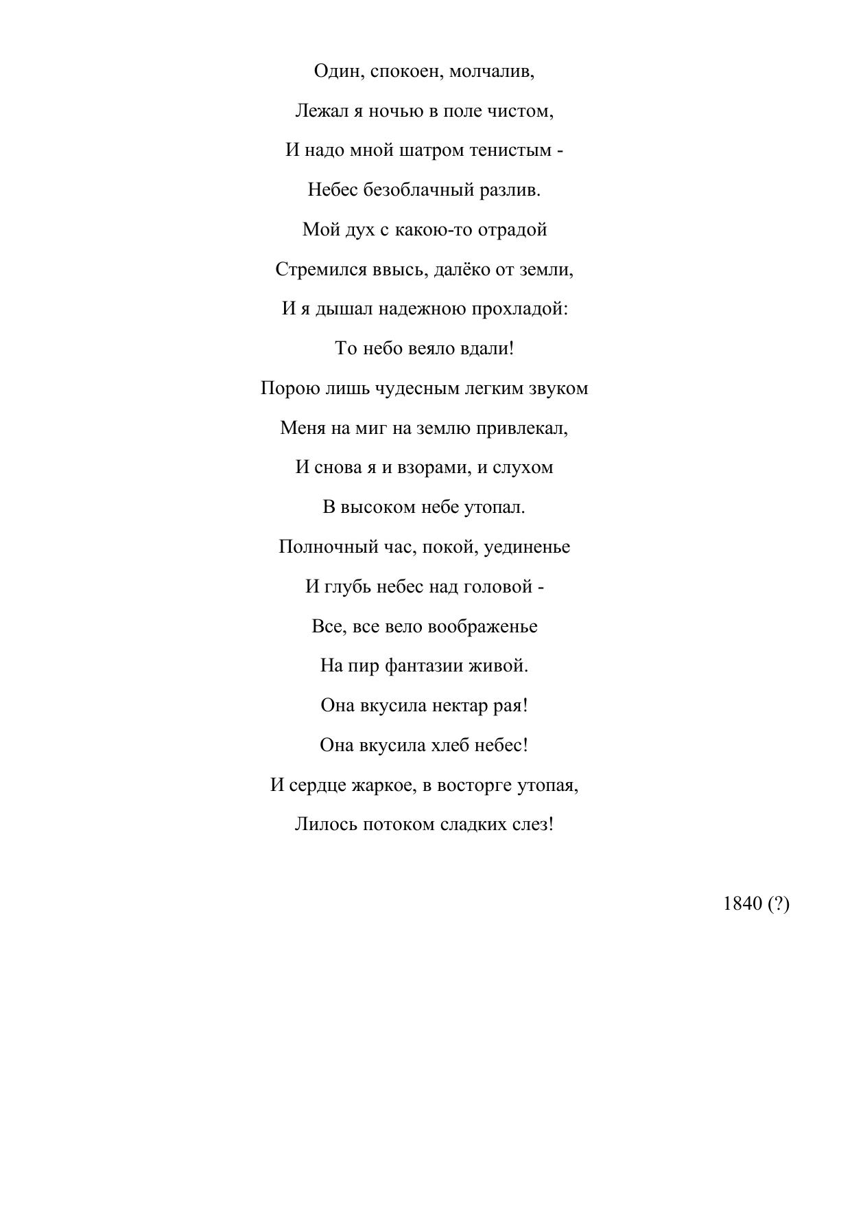 Один, спокоен, молчалив…
