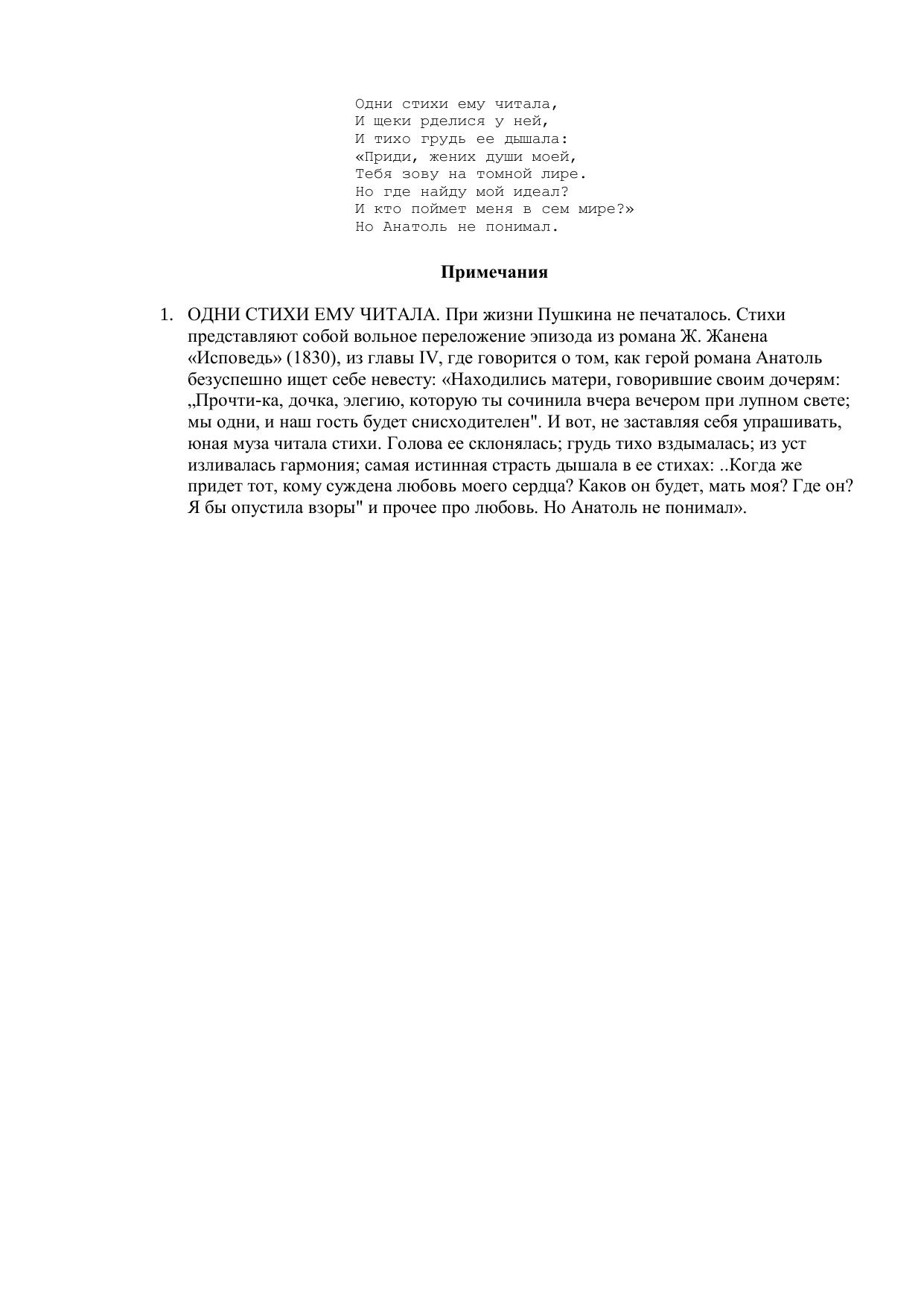 Одни стихи ему читала...