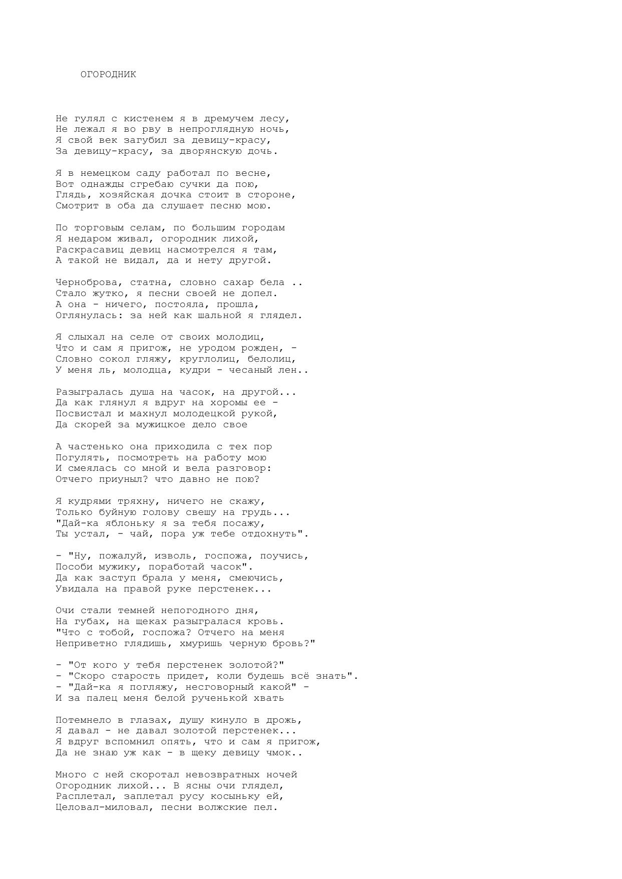 Огородник (Не гулял с кистенем я в дремучем лесу...)