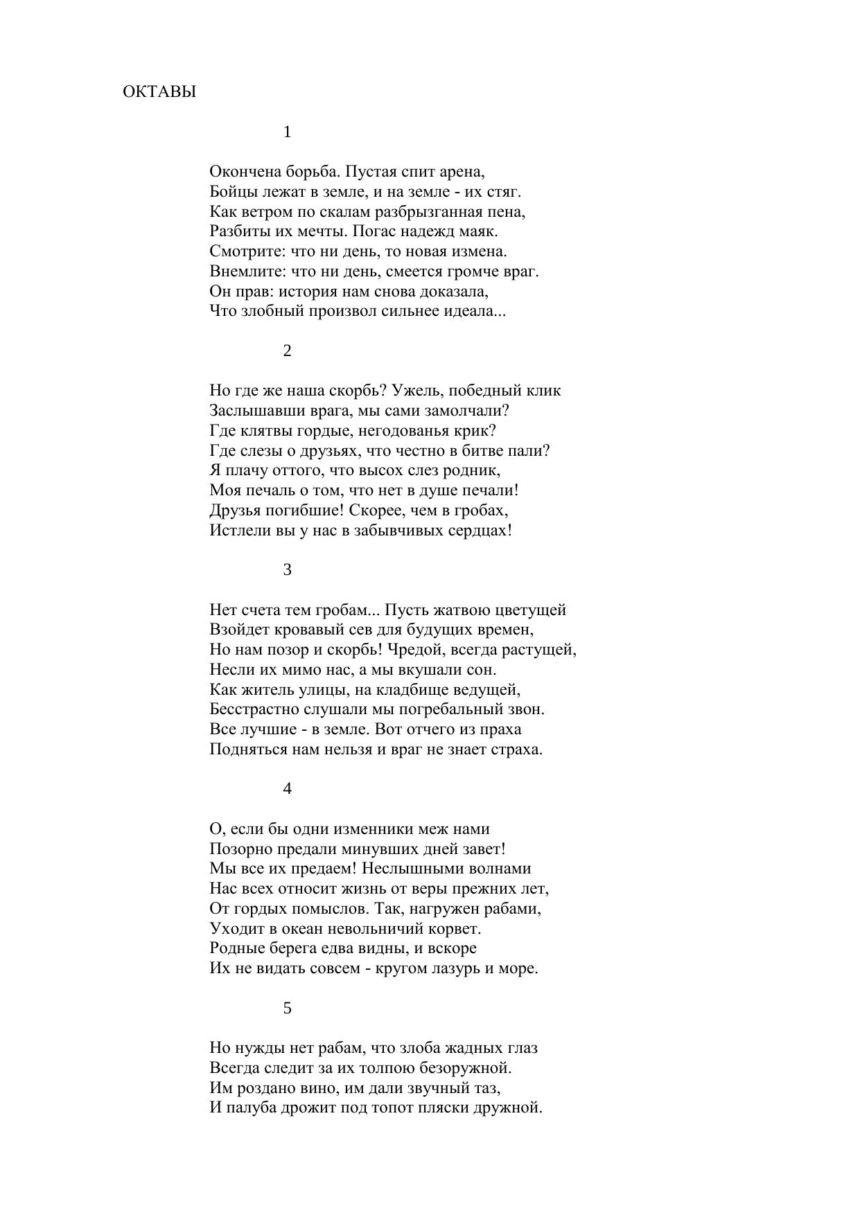 Октавы окончена борьба. Пустая спит арена...