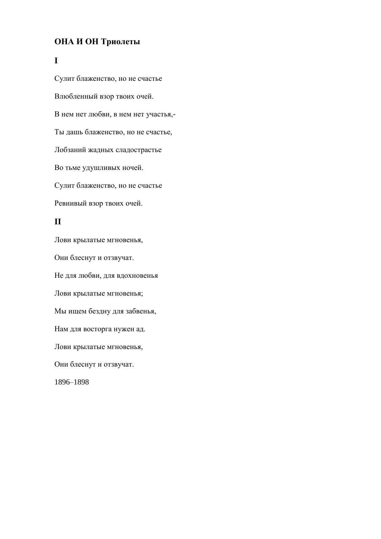 Она и он. Триолеты