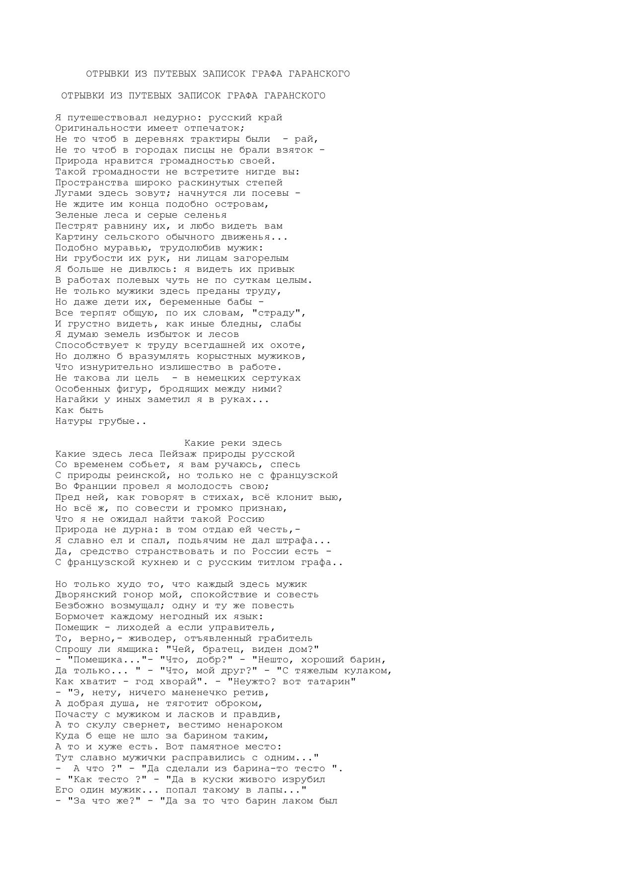 Отрывки из путевых записок графа Гаранского (Я путешествовал недурно: русский край...)
