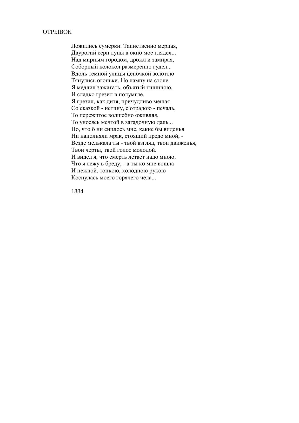 Отрывок Ложились сумерки. Таинственно мерцая...