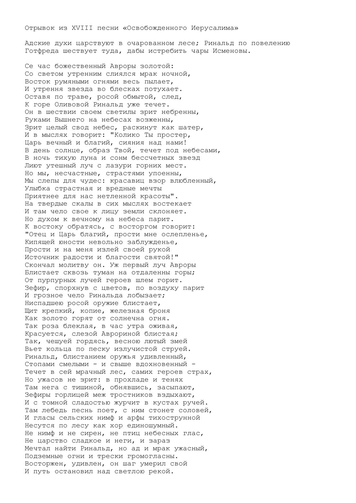 Отрывок из XVIII песни Освобожденного Иерусалима