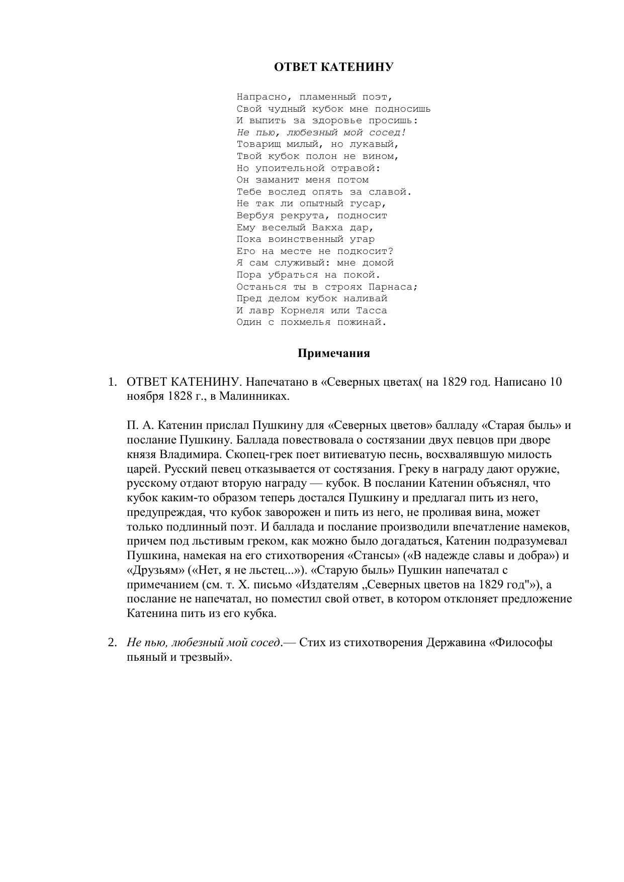 Ответ Катенину ("Напрасно, пламенный поэт...")