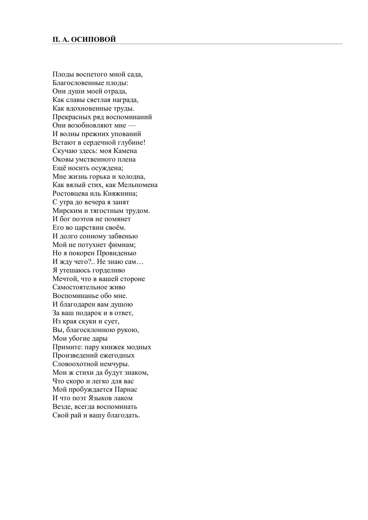 П. А. Осиповой (Плоды воспетого мной сада…)