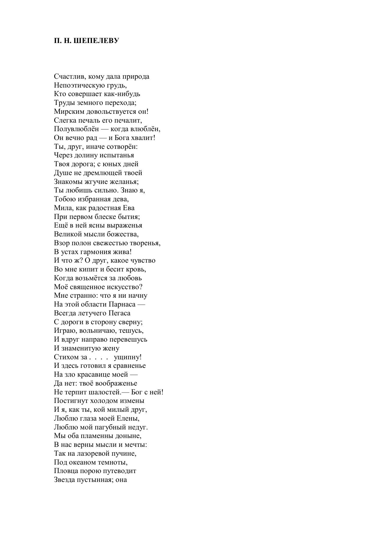 П. Н. Шепелеву (Счастлив, кому дала природа…)