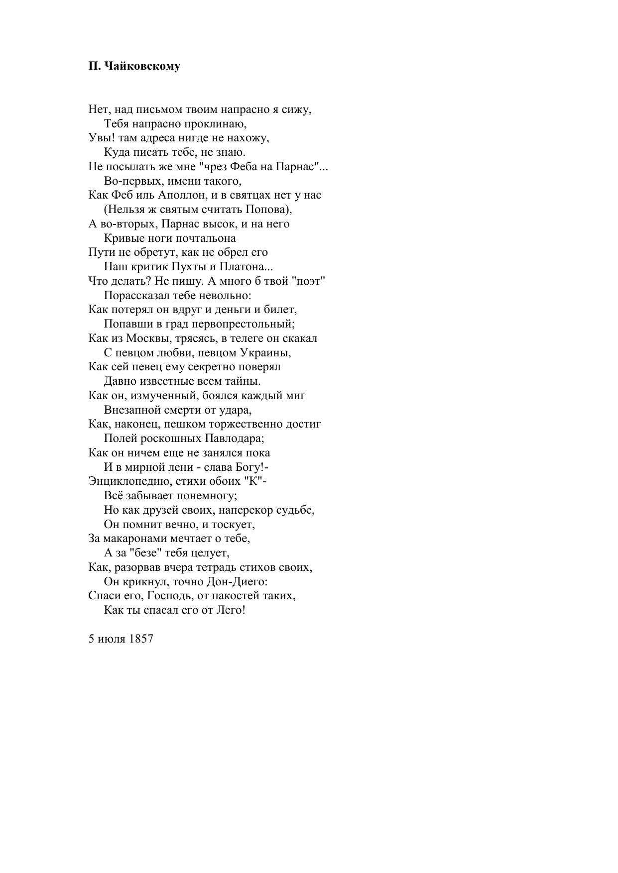 П. Чайковскому