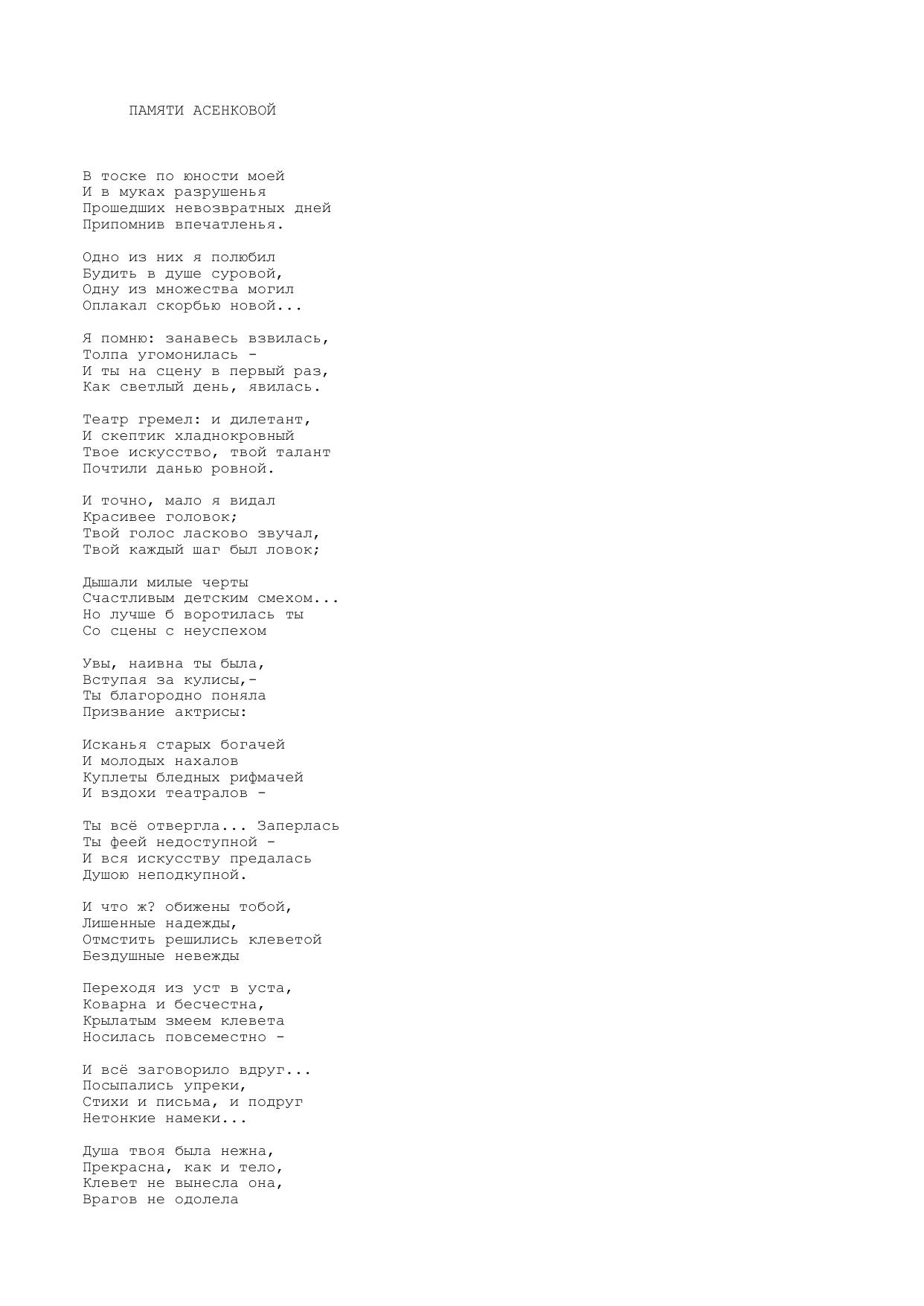 Памяти Асенковой (В тоске по юности моей...)