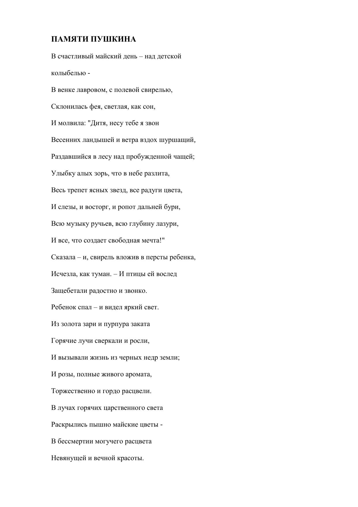 Памяти Пушкина