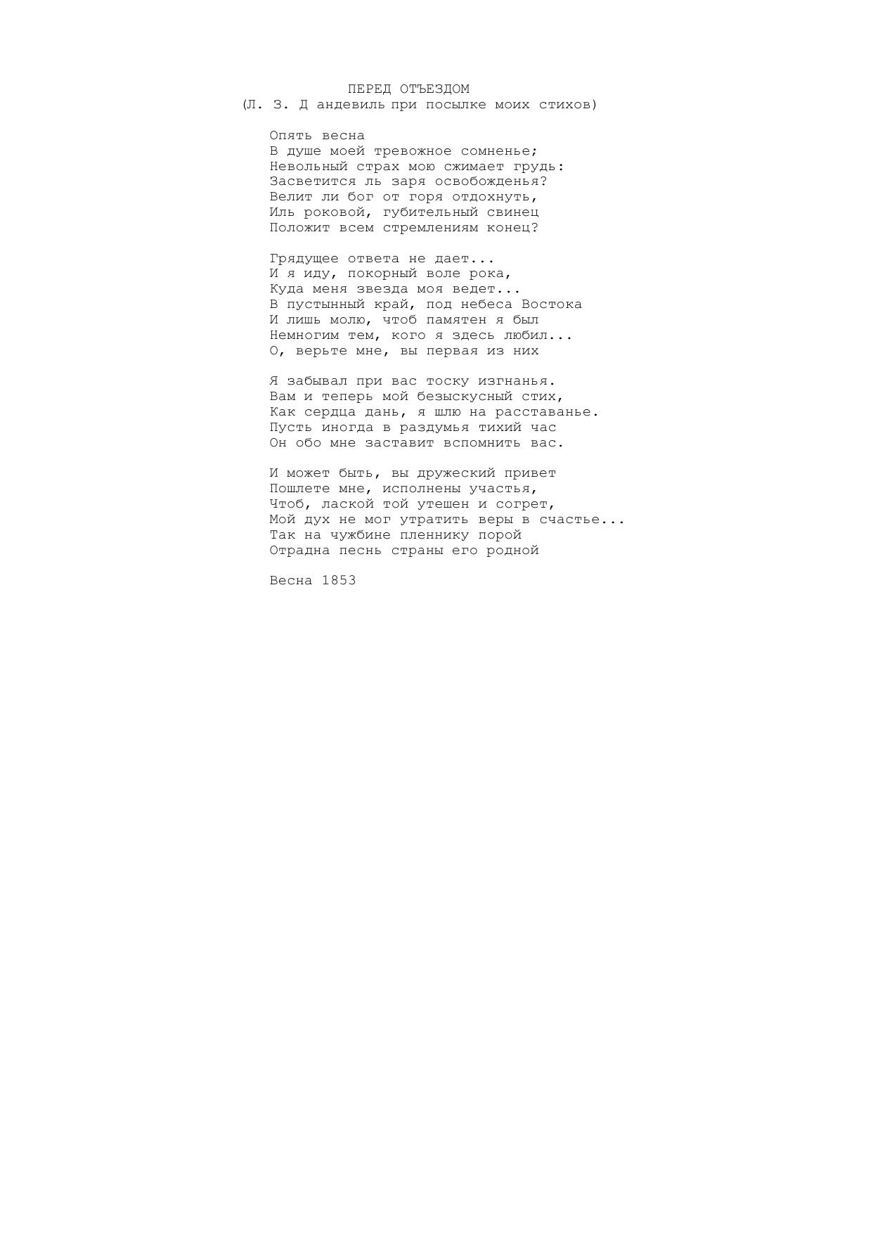 Перед отъездом (Л. З. Д<андевиль> - при посылке моих стихов)