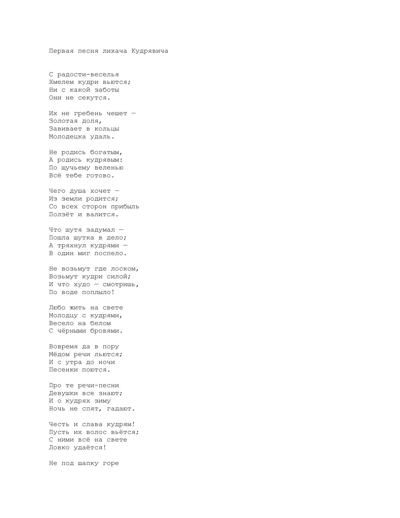 Первая песня лихача Кудрявича