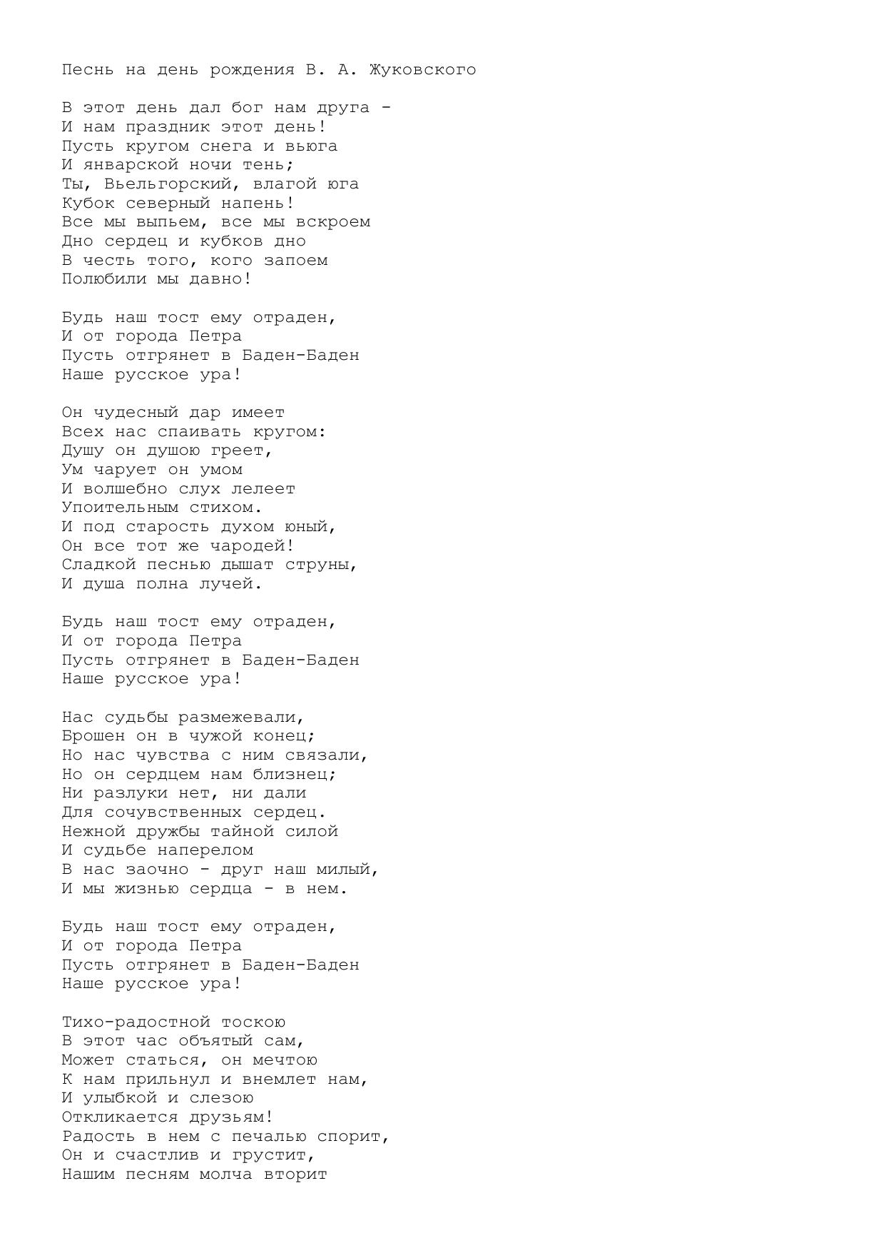 Песнь на день рождения В. А. Жуковского