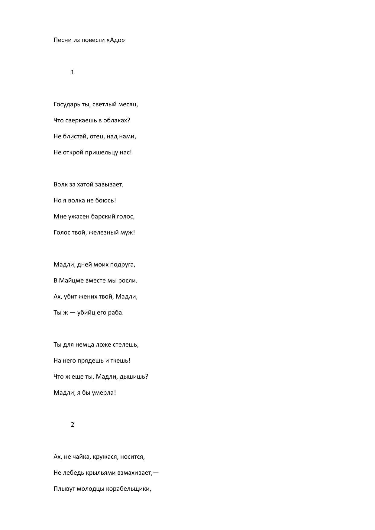 Песни из повести Адо