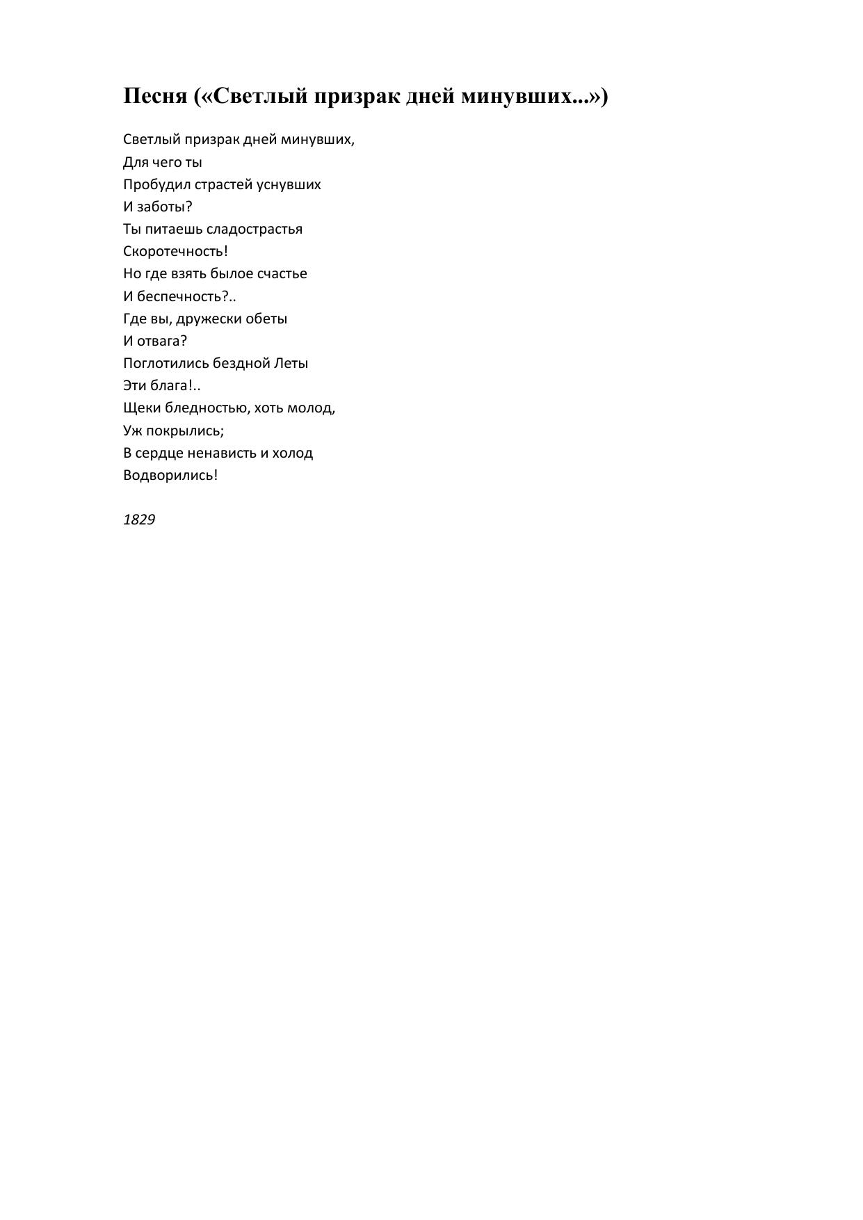 Песня (Светлый призрак дней минувших...)
