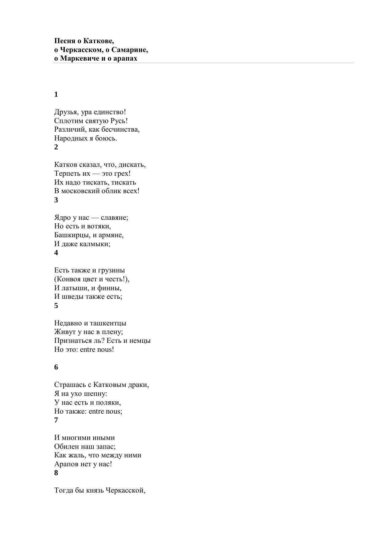Песня о Каткове, о Черкасском, о Самарине, о Маркевиче и о арапах