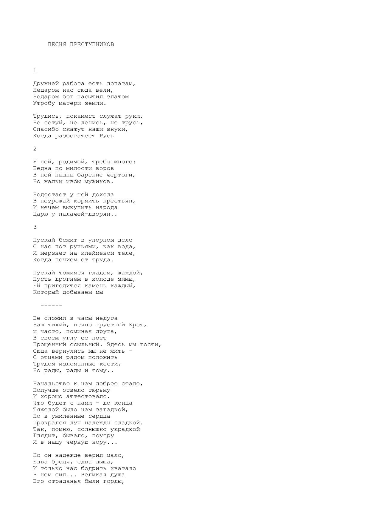 Песня преступников (Дружней! работа есть лопатам...)