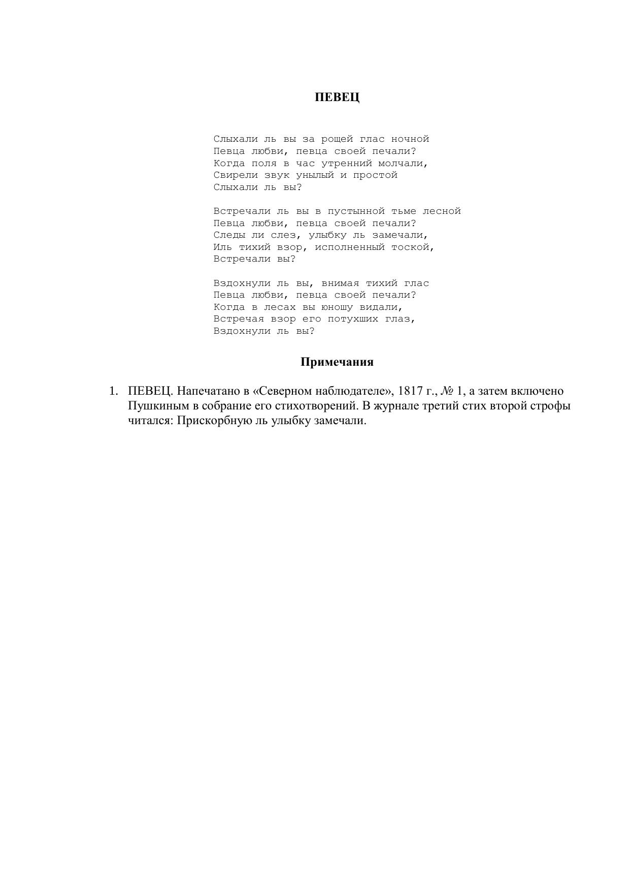 Певец ("Слыхали ль вы за рощей глас ночной...")