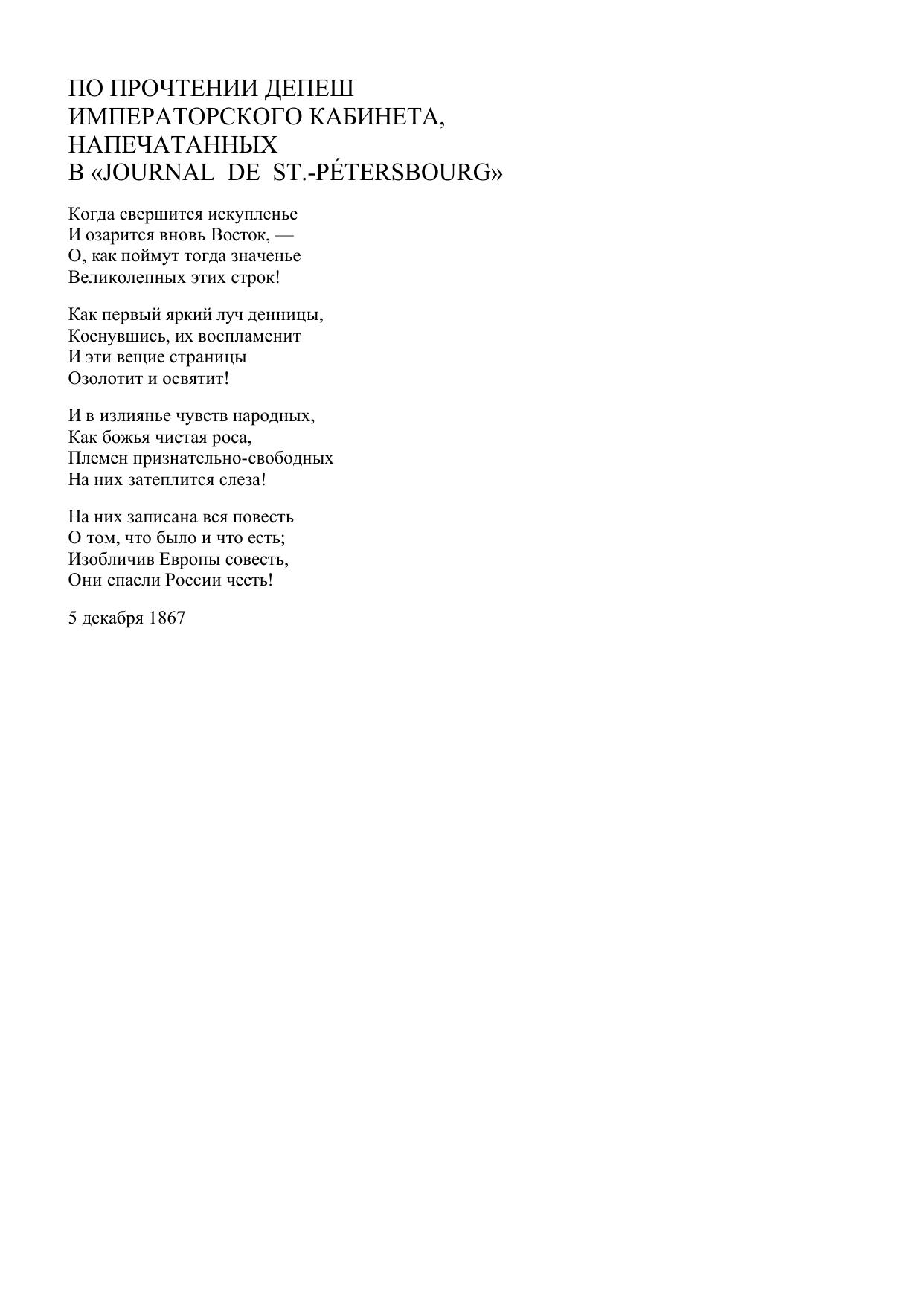 По прочтении депеш императорского кабинета, напечатанных в Journal de St.-Petersbourg