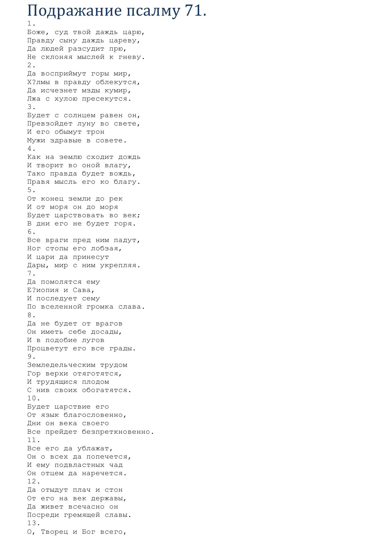 Подражание псалму 71.