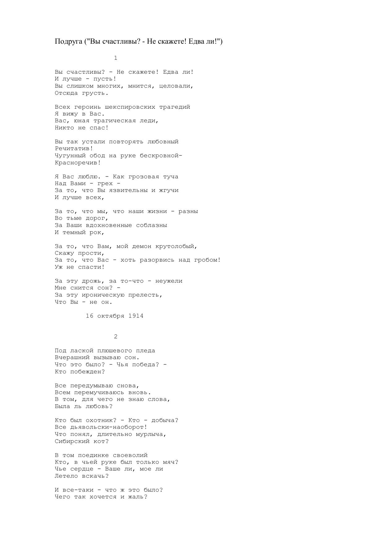 Подруга (вы счастливы? - не скажете! едва ли!)