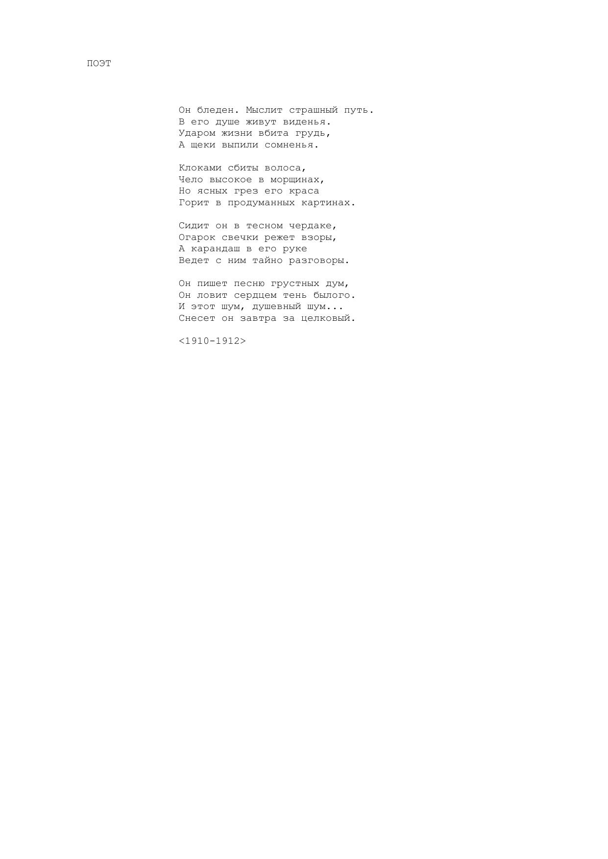 Поэт(Есенин С.А. Он бледен. Мыслит страшный путь...Есенин С.А. )