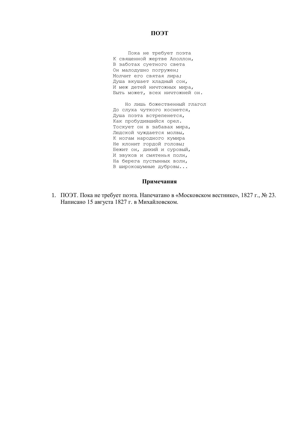 Поэт ("Пока не требует поэта...")