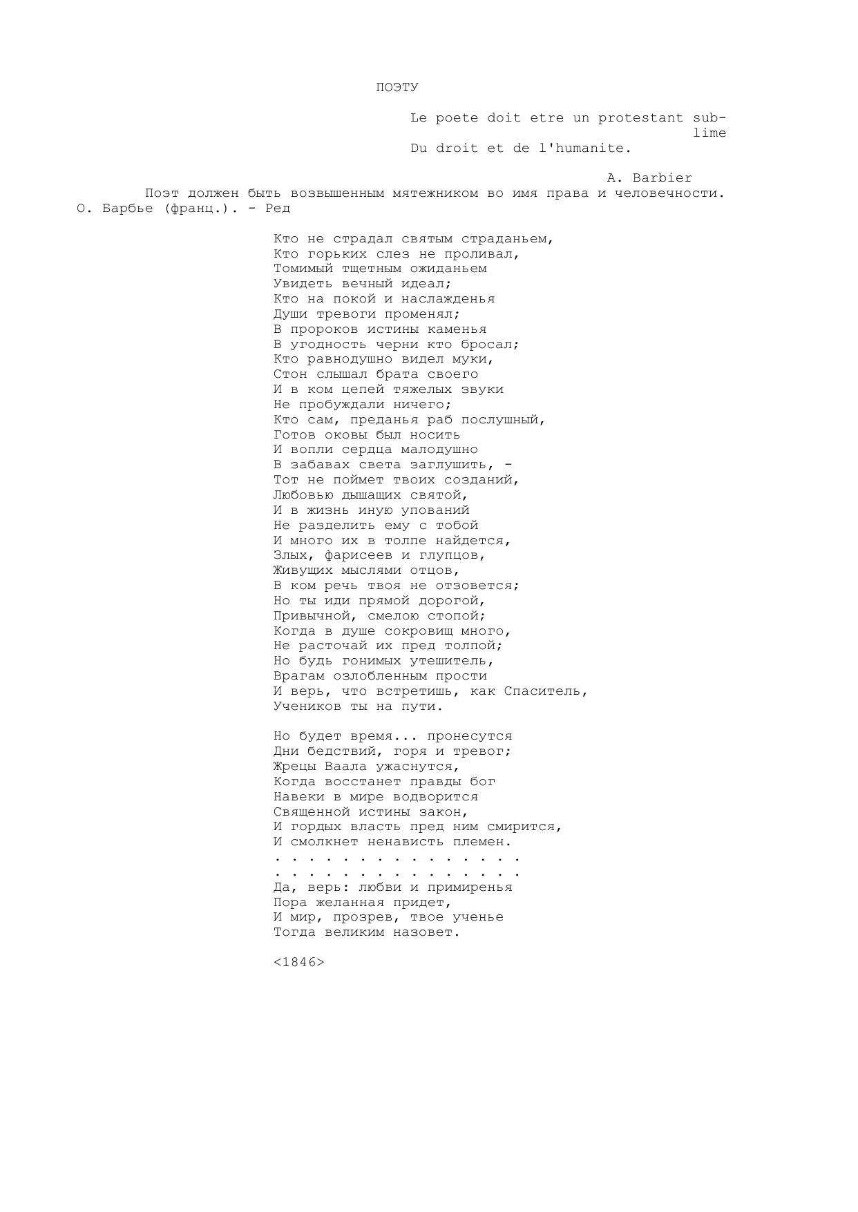 Поэту (Кто не страдал святым страданьем...)
