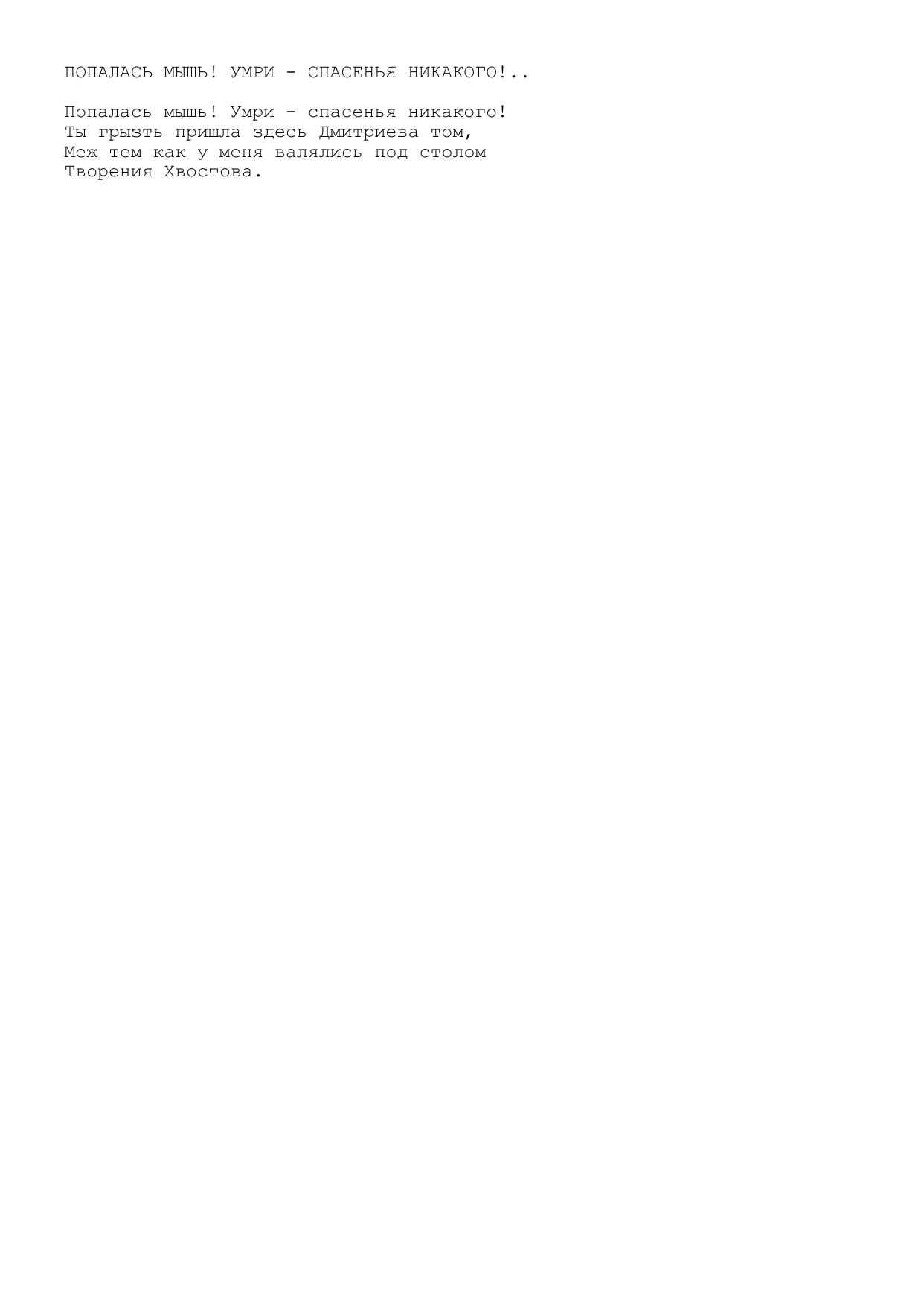 Попалась мышь! Умри – спасенья никакого...