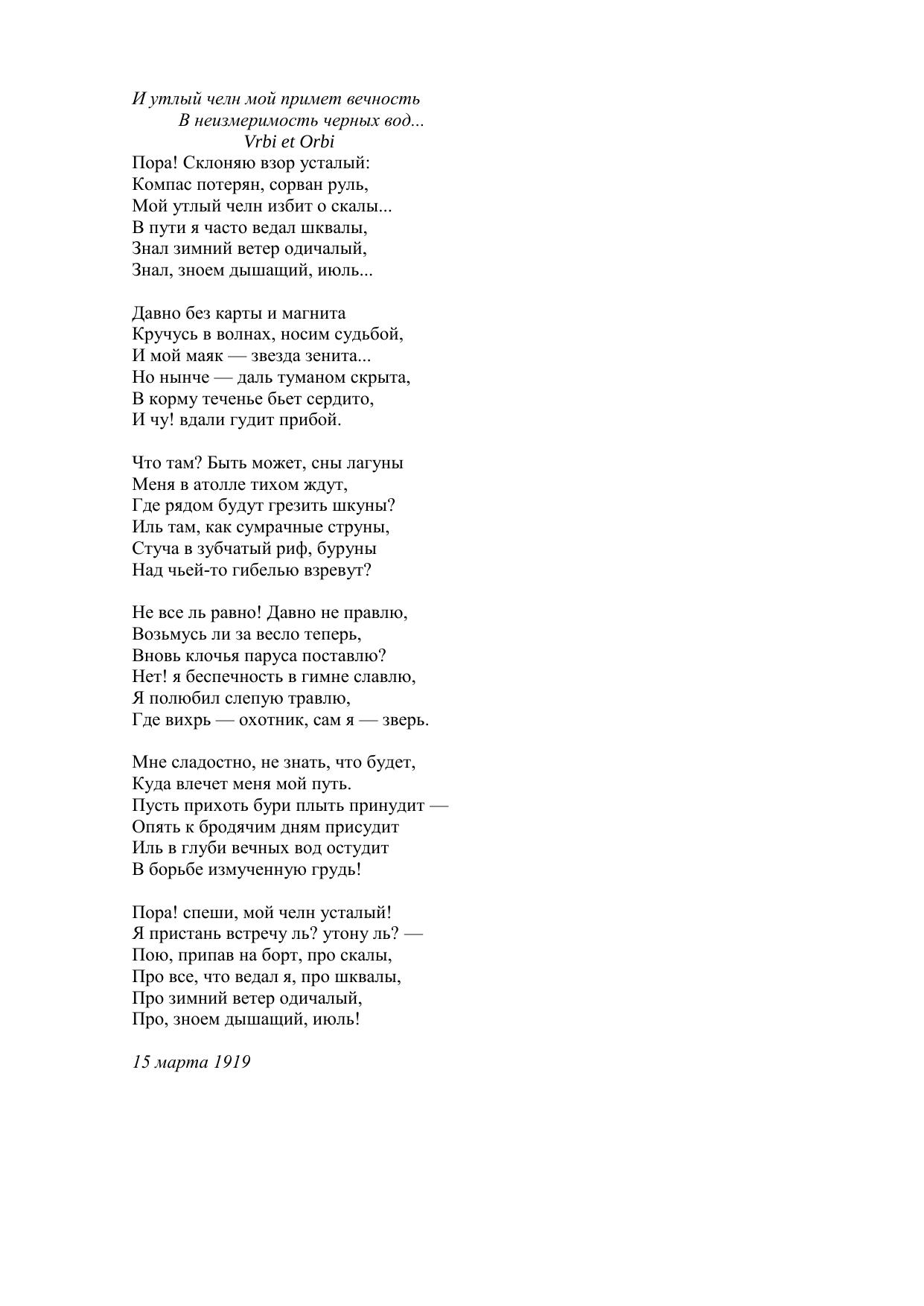 Пора! Склоняю взор усталый…