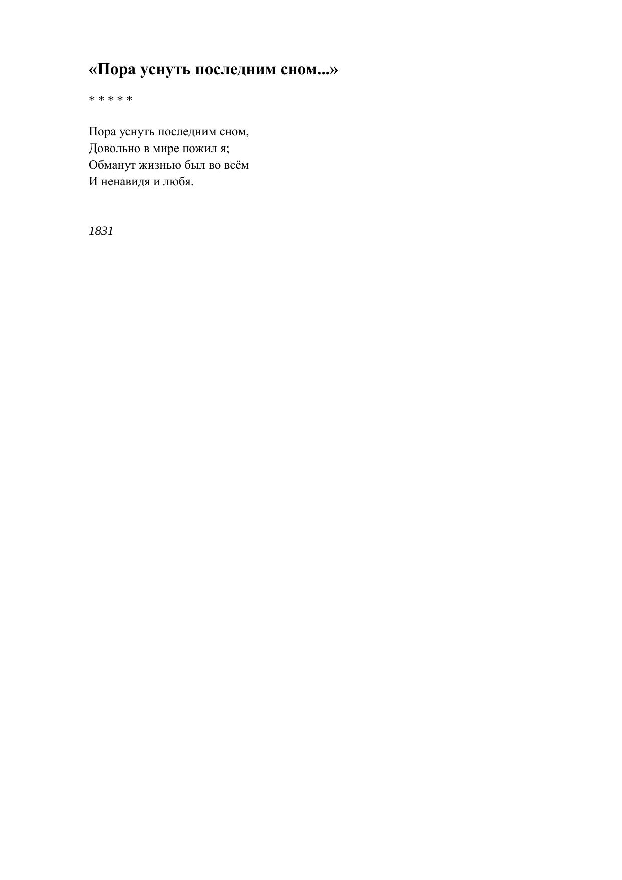 Пора уснуть последним сном...
