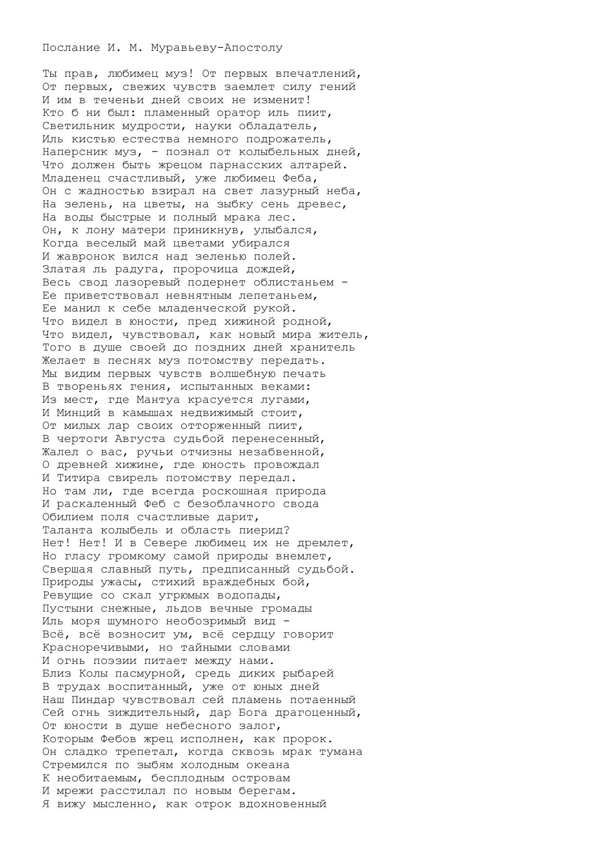 Послание И. М. Муравьеву-Апостолу
