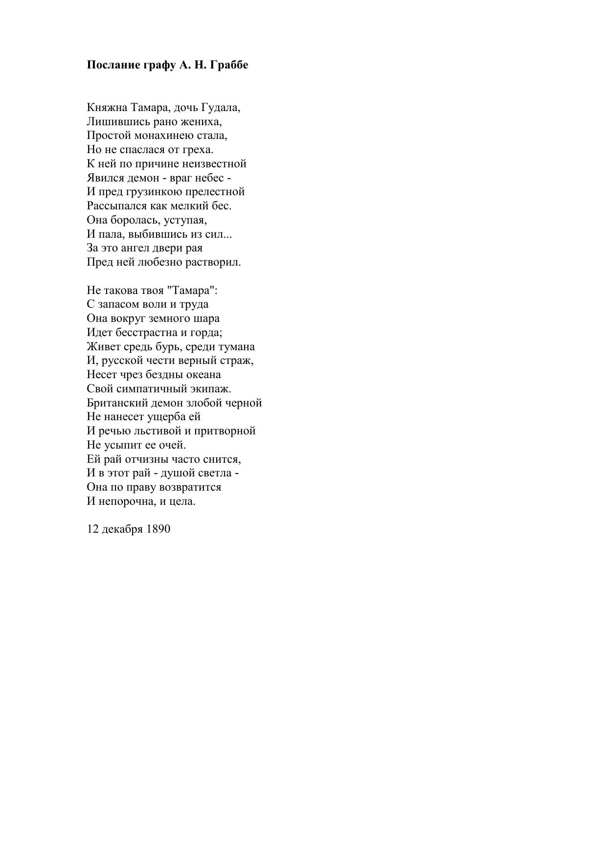 Послание графу А. Н. Граббе