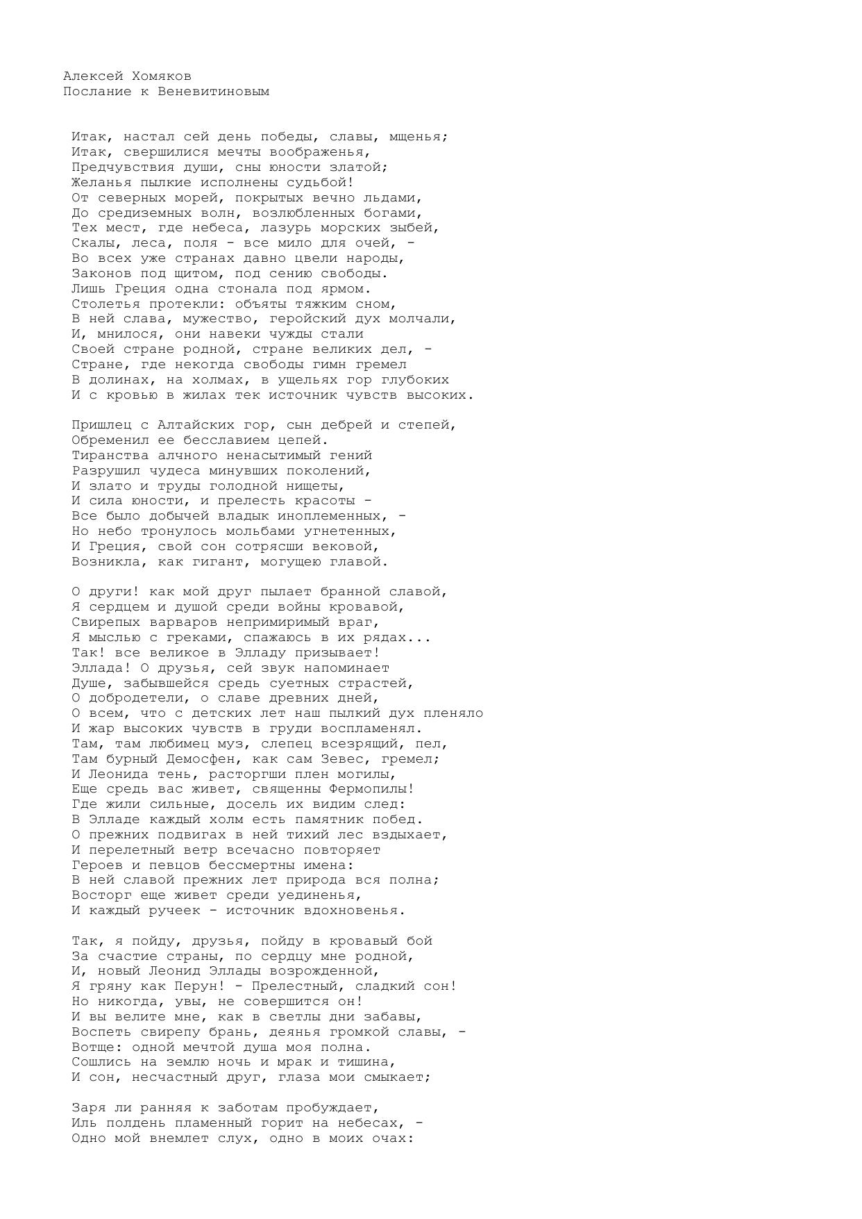 Послание к Веневитиновым