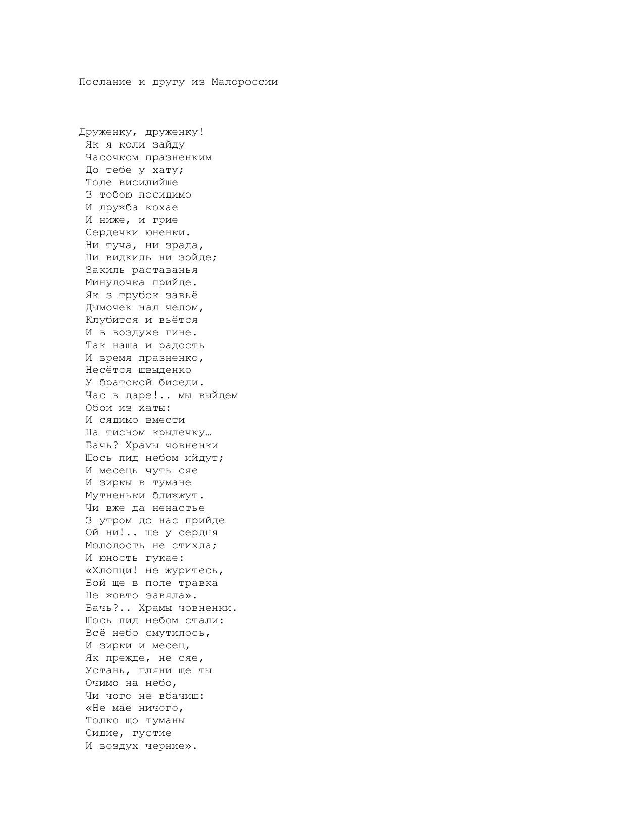 Послание к другу из Малороссии